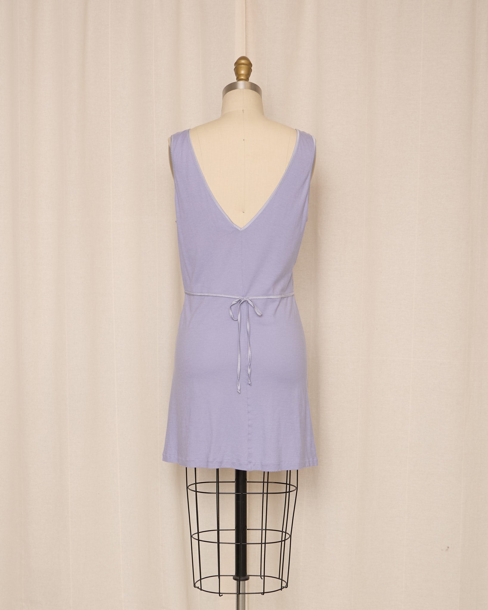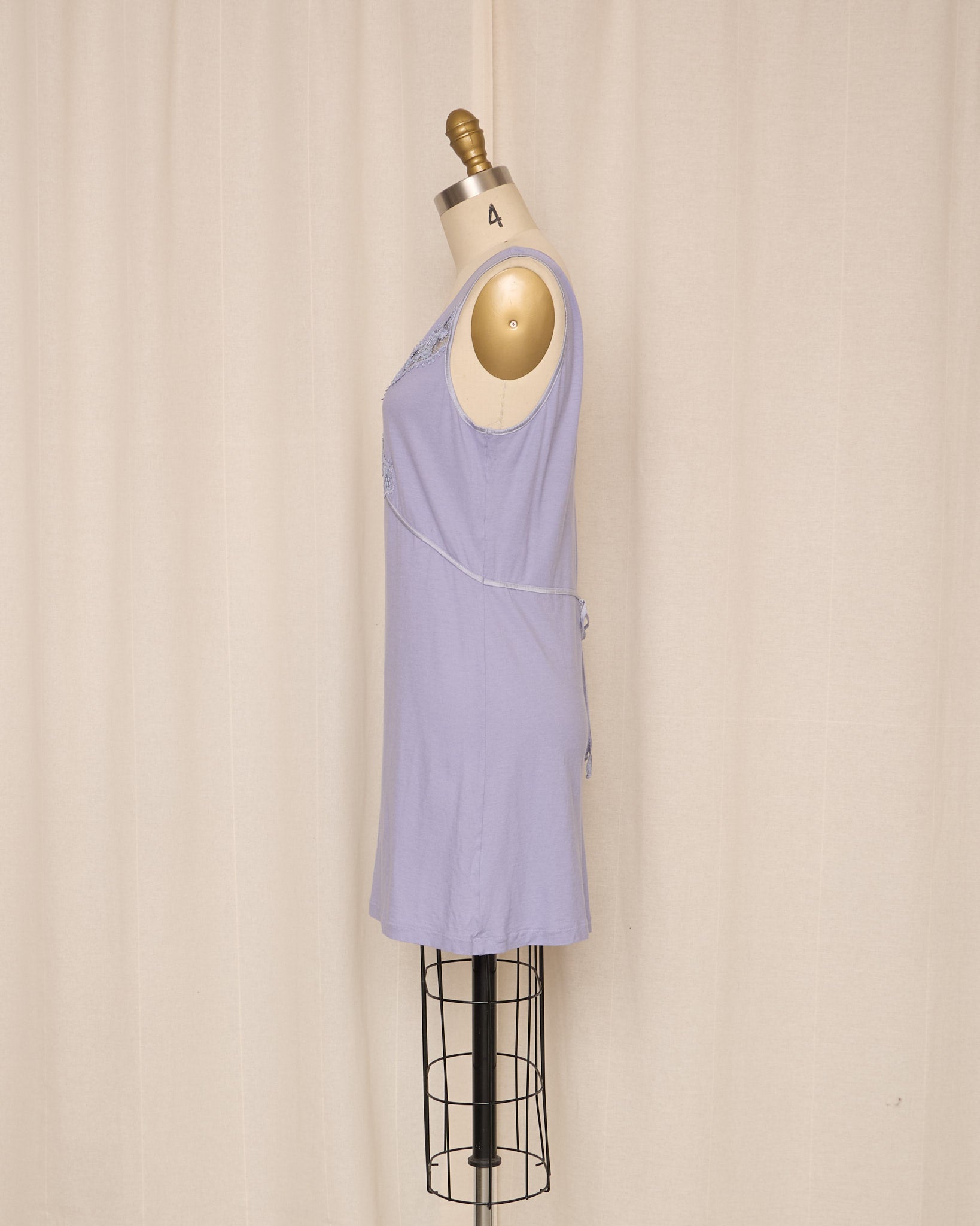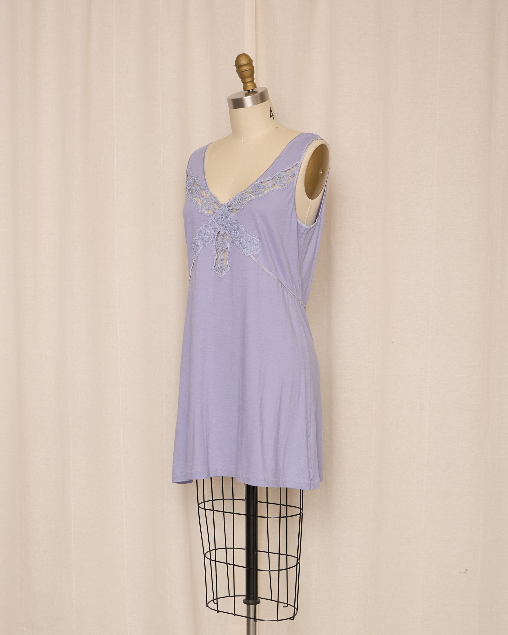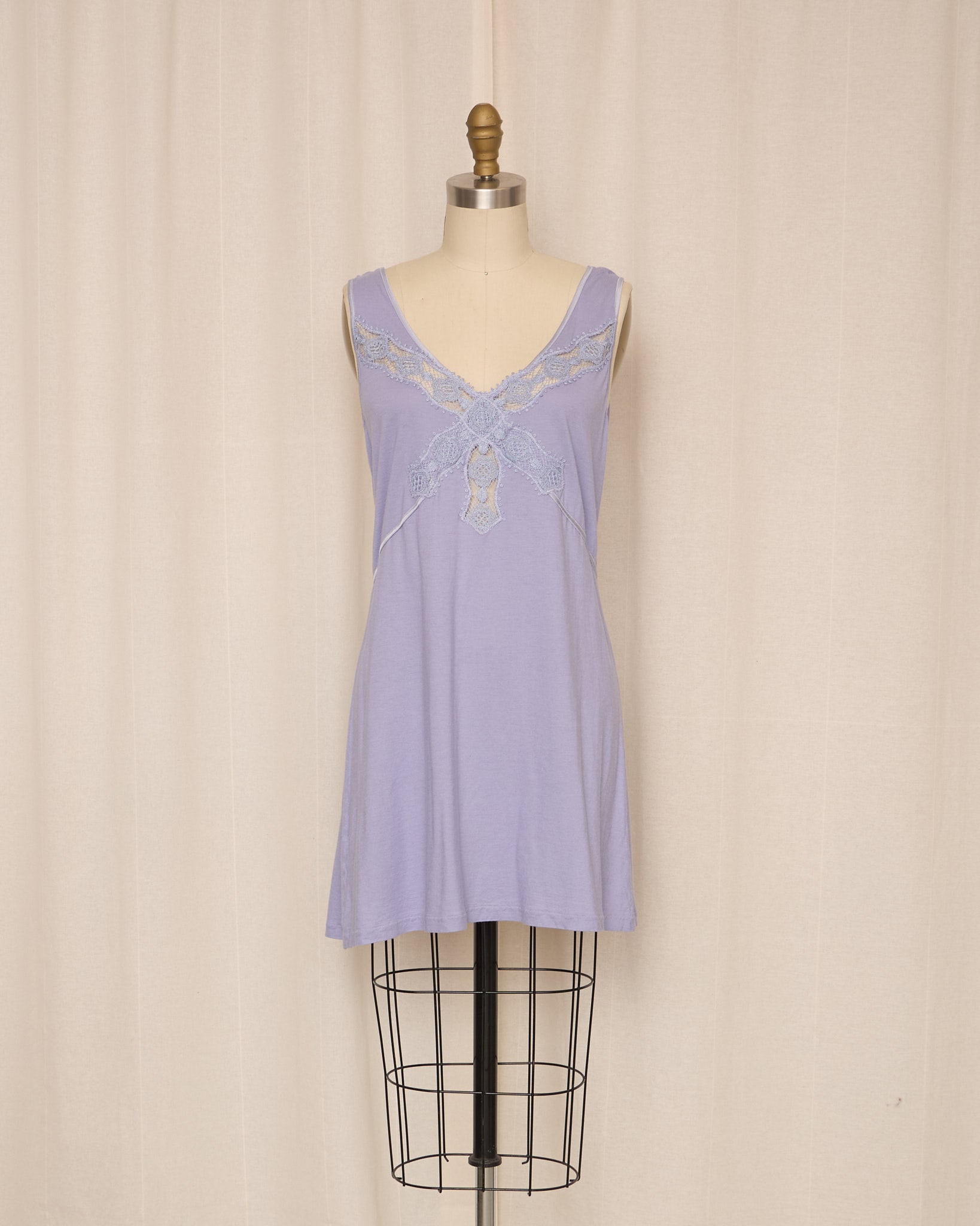 Soft and feminine La Perla lavender slip dress featuring delicate lace detailing at the neckline and a loose, easy drape silhouette.