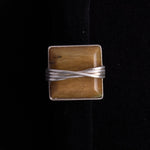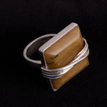 Sterling silver ring featuring a large square brown stone set in a silver frame with wrapped band detail.