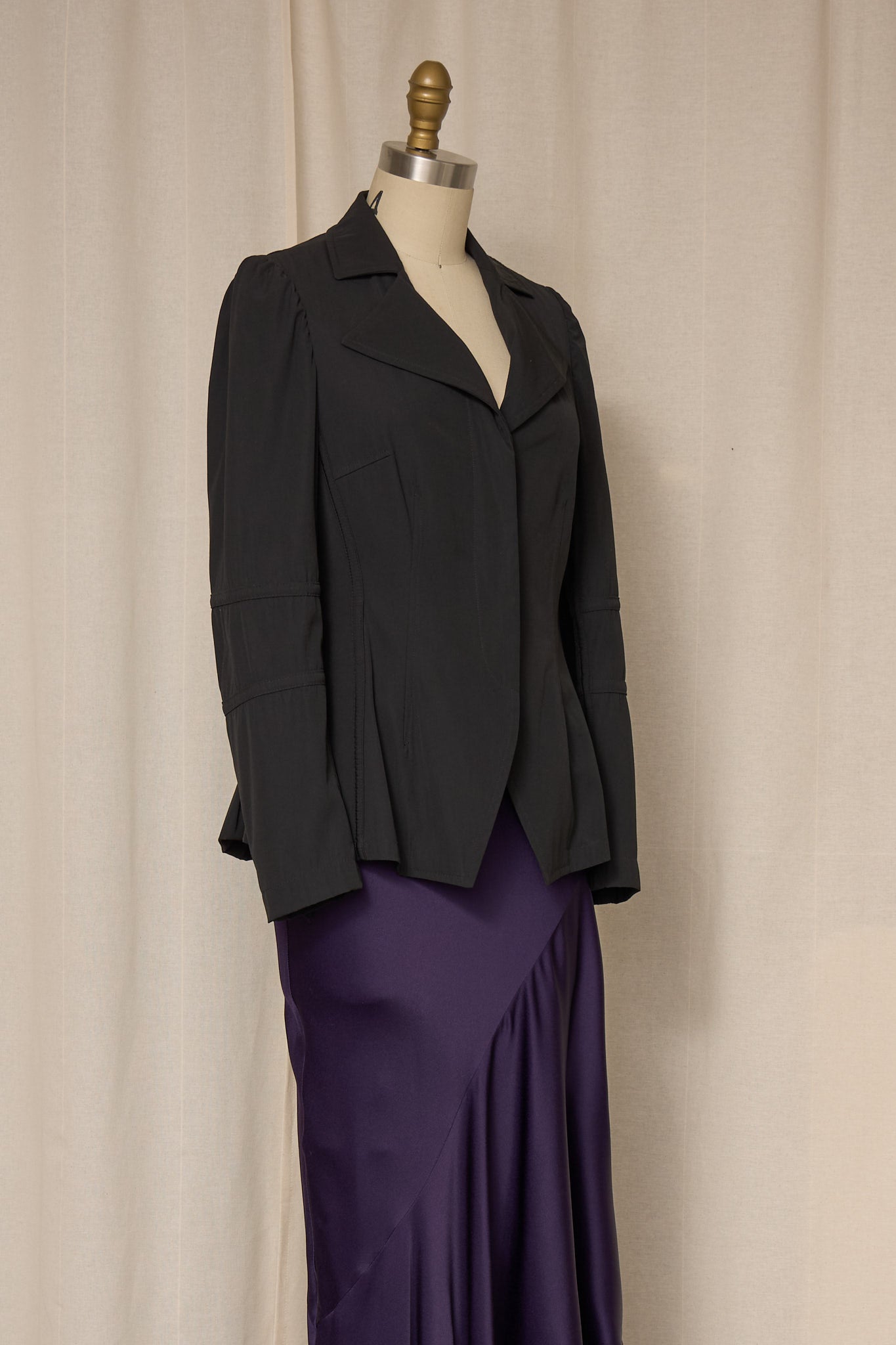 Vintage Dries Van Noten tailored blazer from the early 2000s with a softly sculpted silhouette and elongated lines. Minimal button-front design with subtle structure and refined proportions. Timeless and understated, in very good vintage condition.