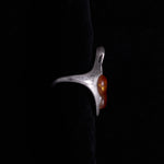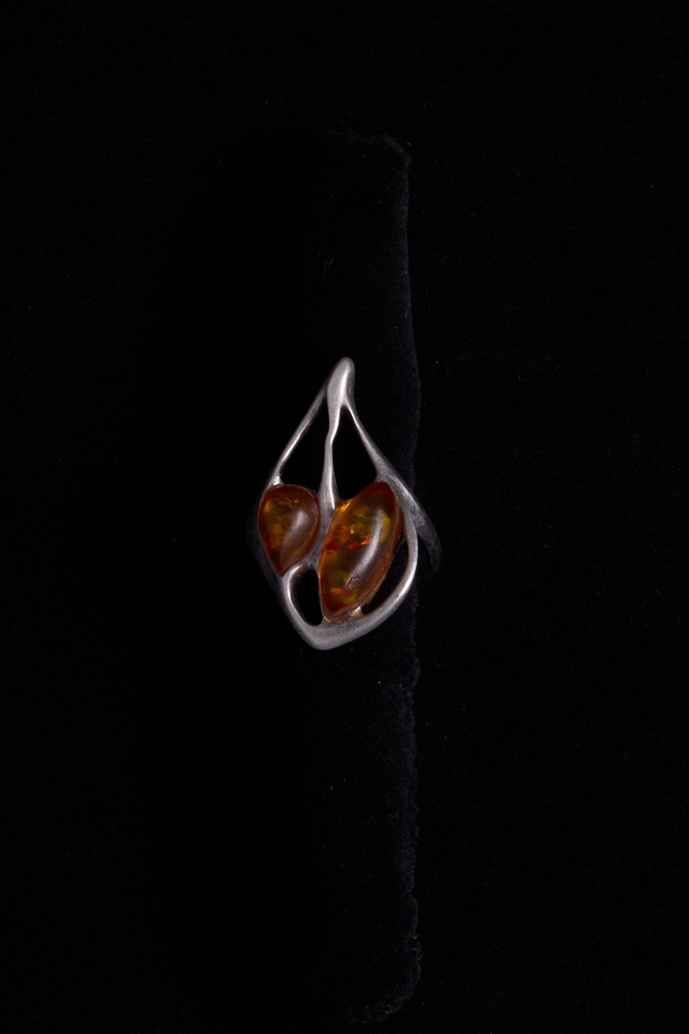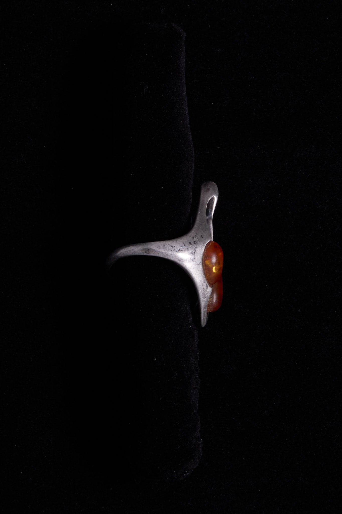 Vintage sterling silver ring featuring warm amber cabochons set in an organic openwork design.