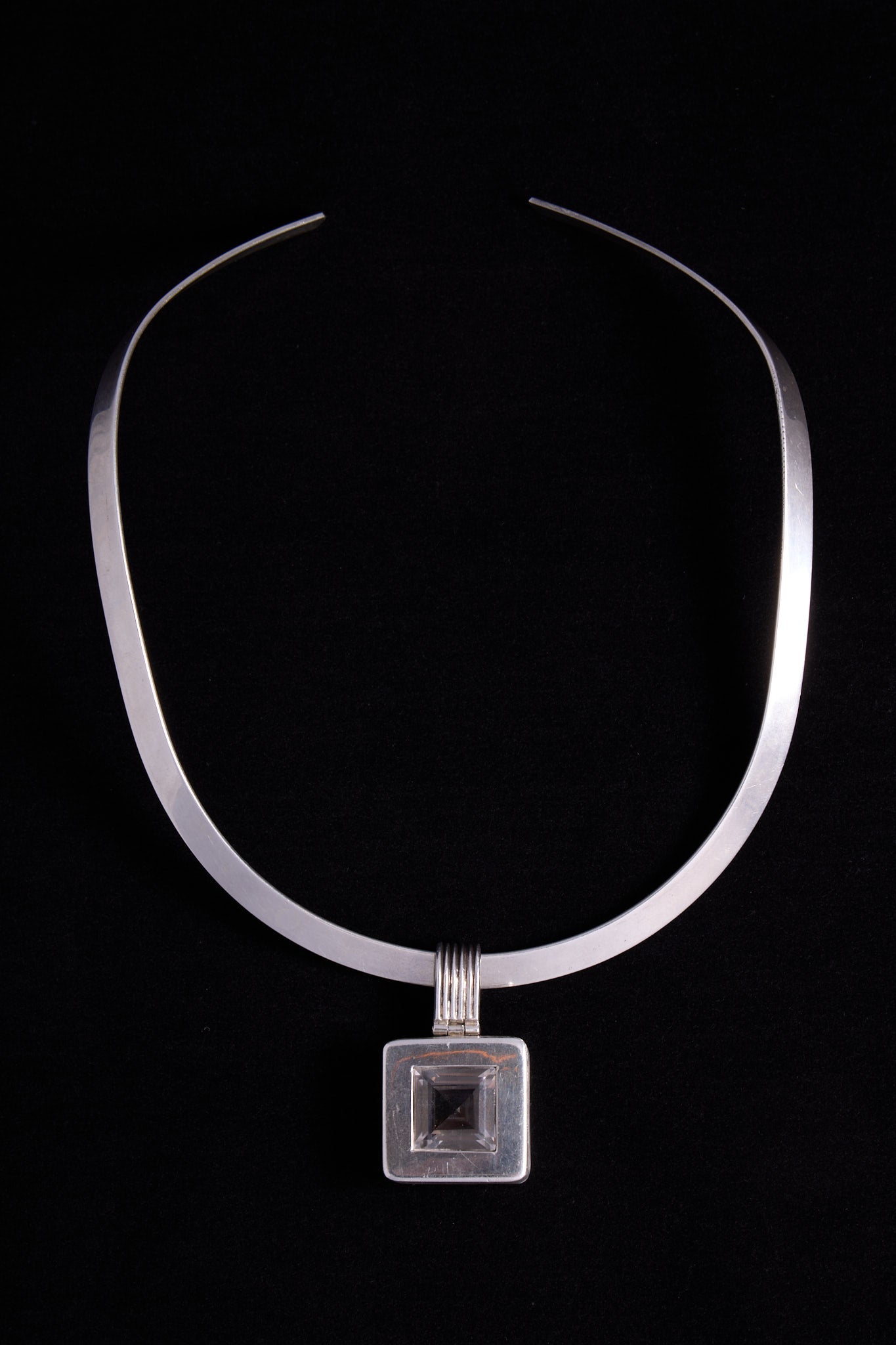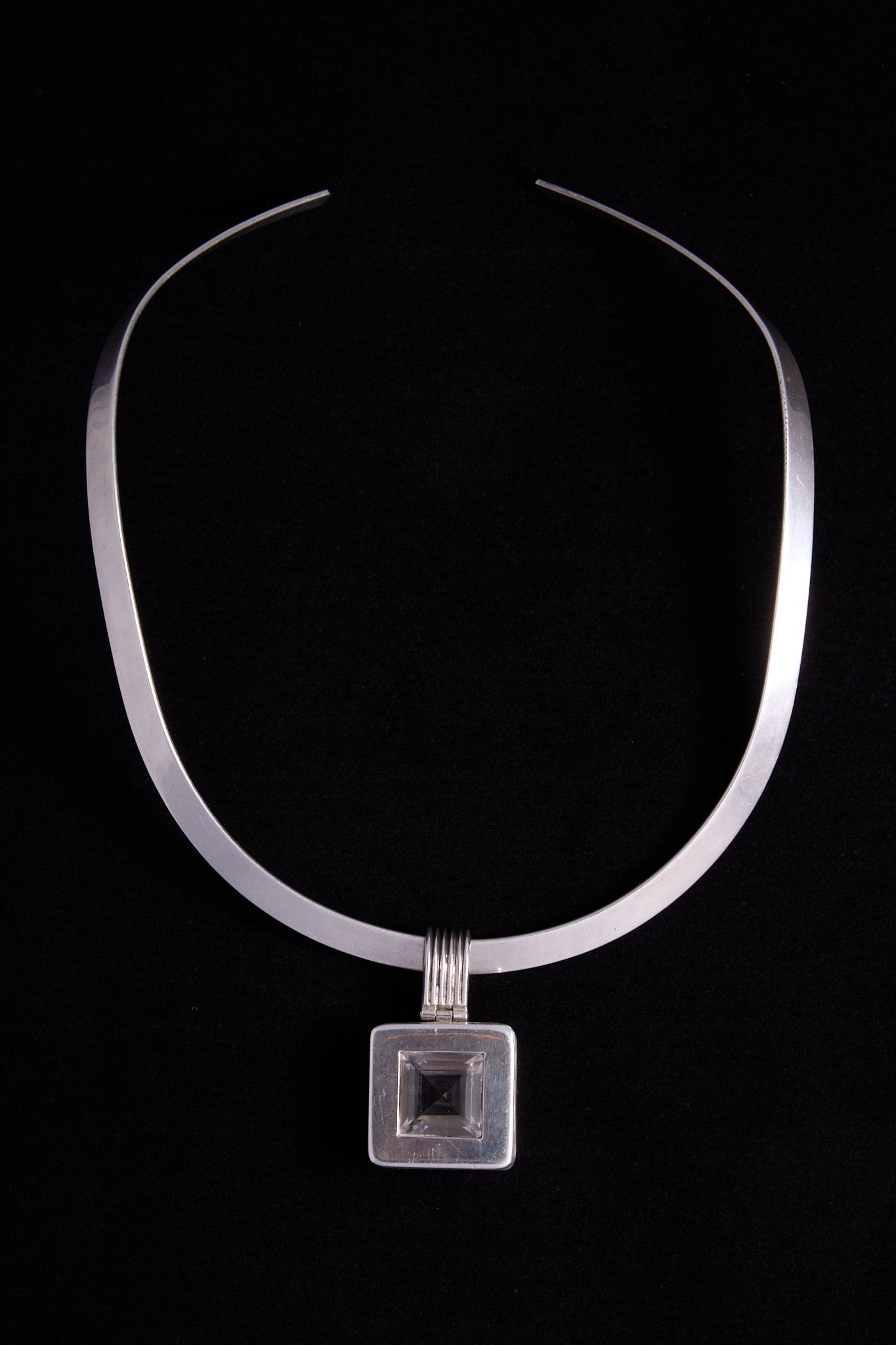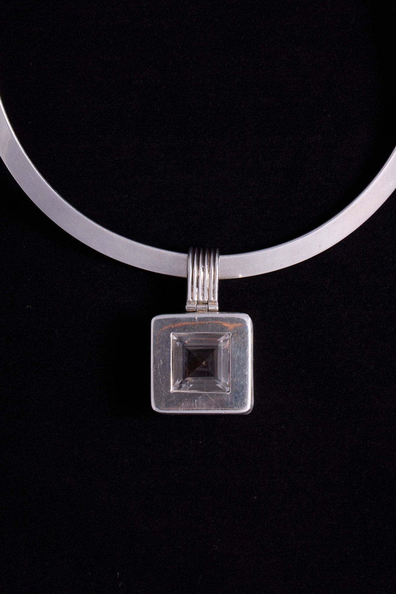 Sterling Silver Square Crystal Pendant Collar Necklace