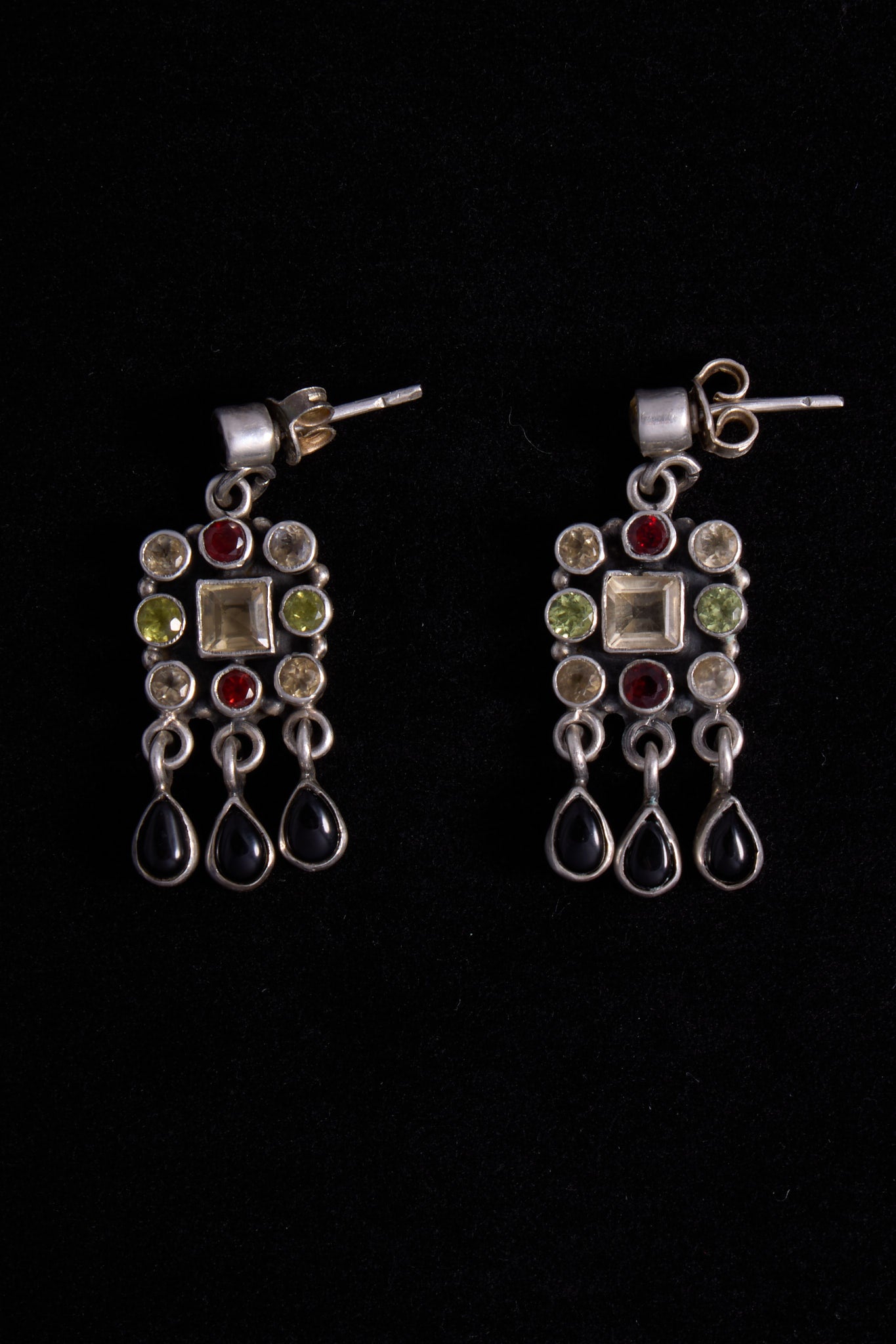 Sterling Silver Drop Earrings with Multi Colored Stones