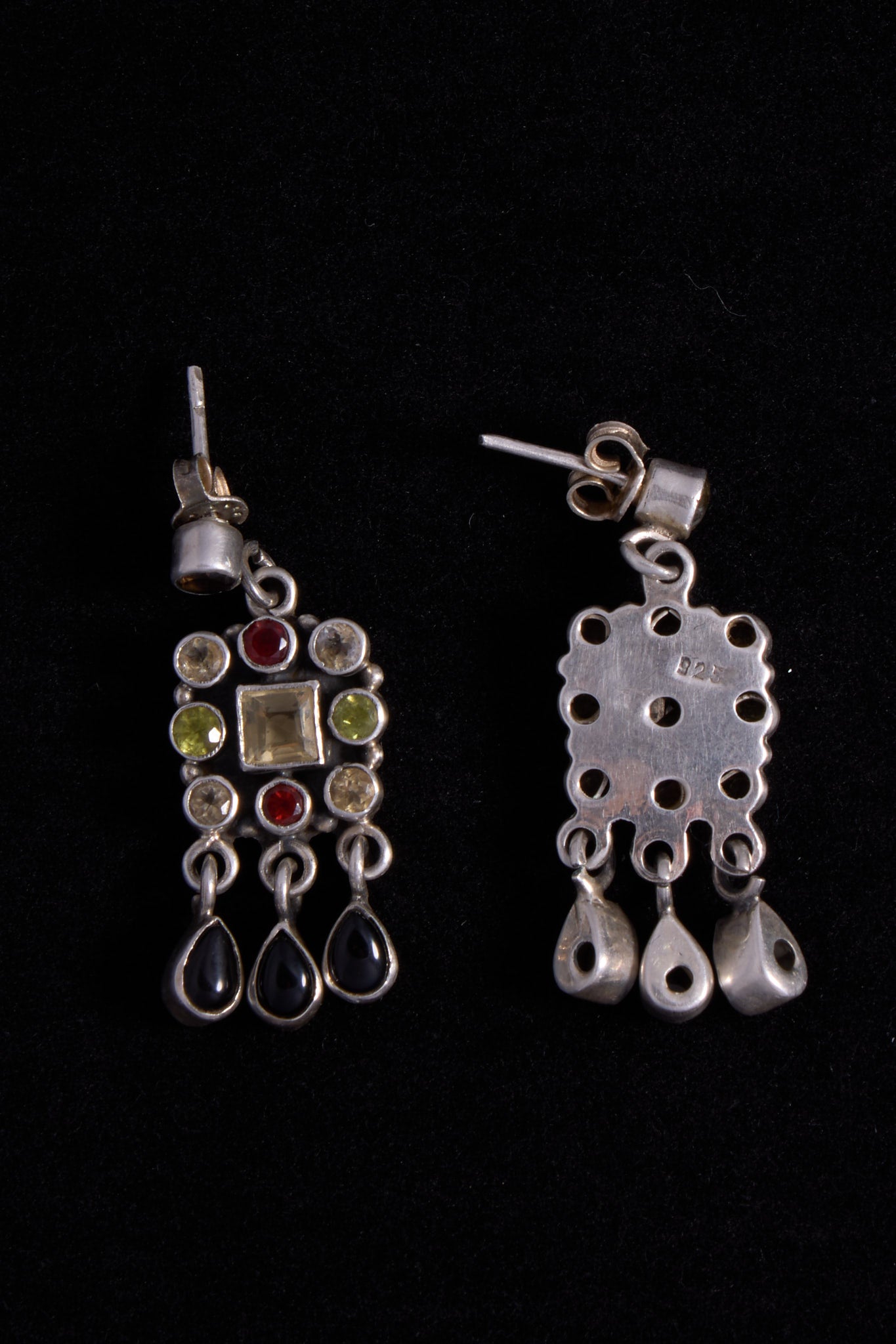 Material: Vintage sterling silver stamped with 925, multi colored gemstones