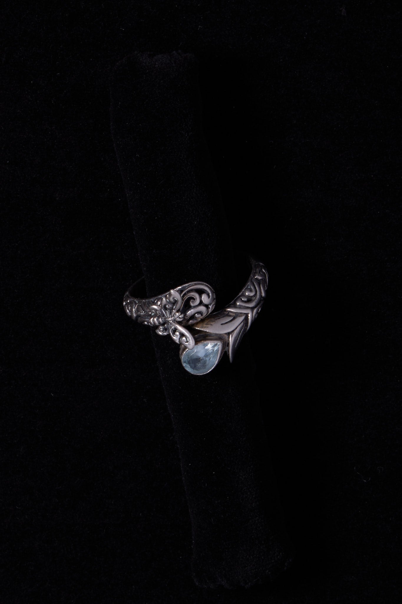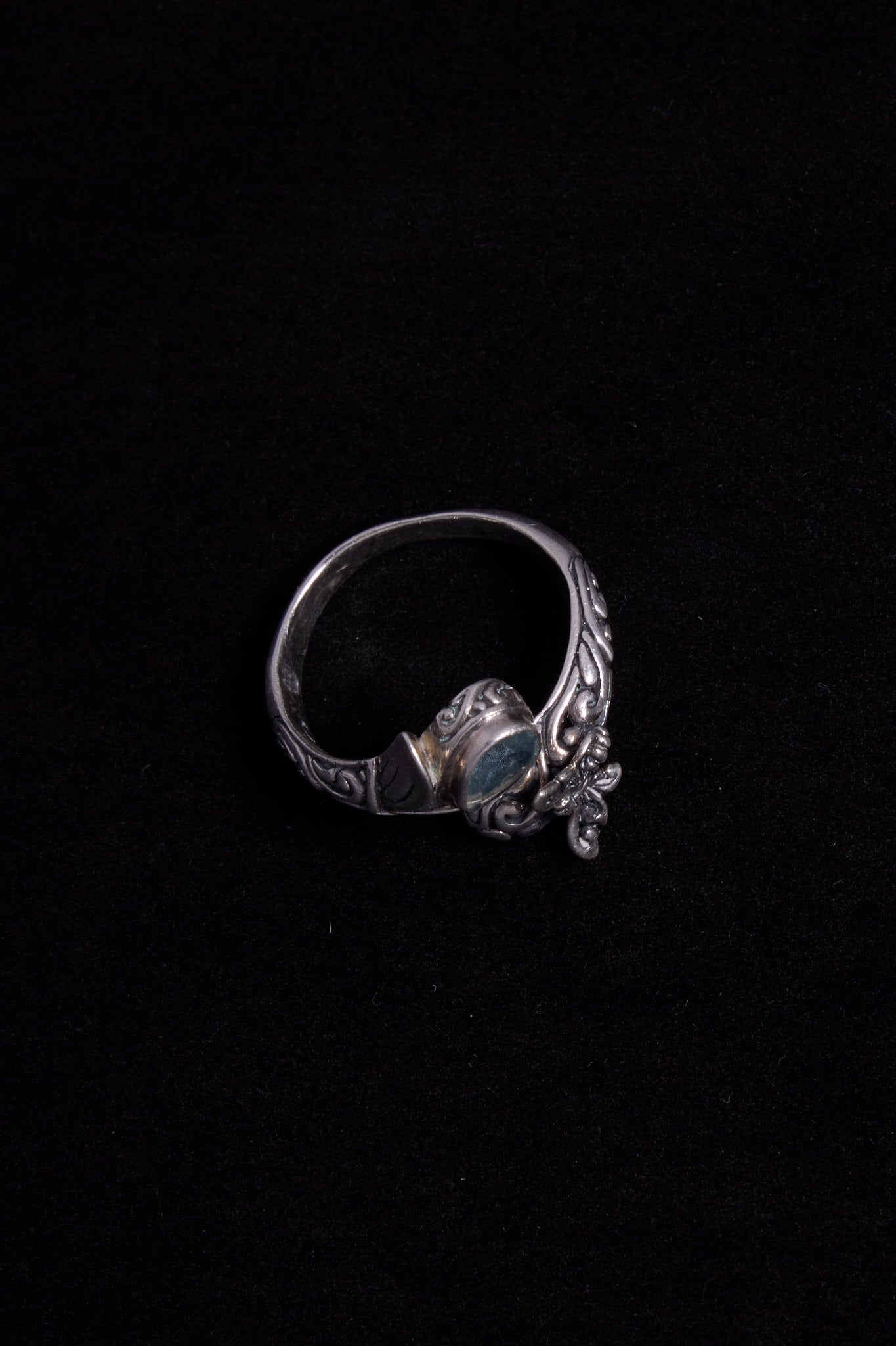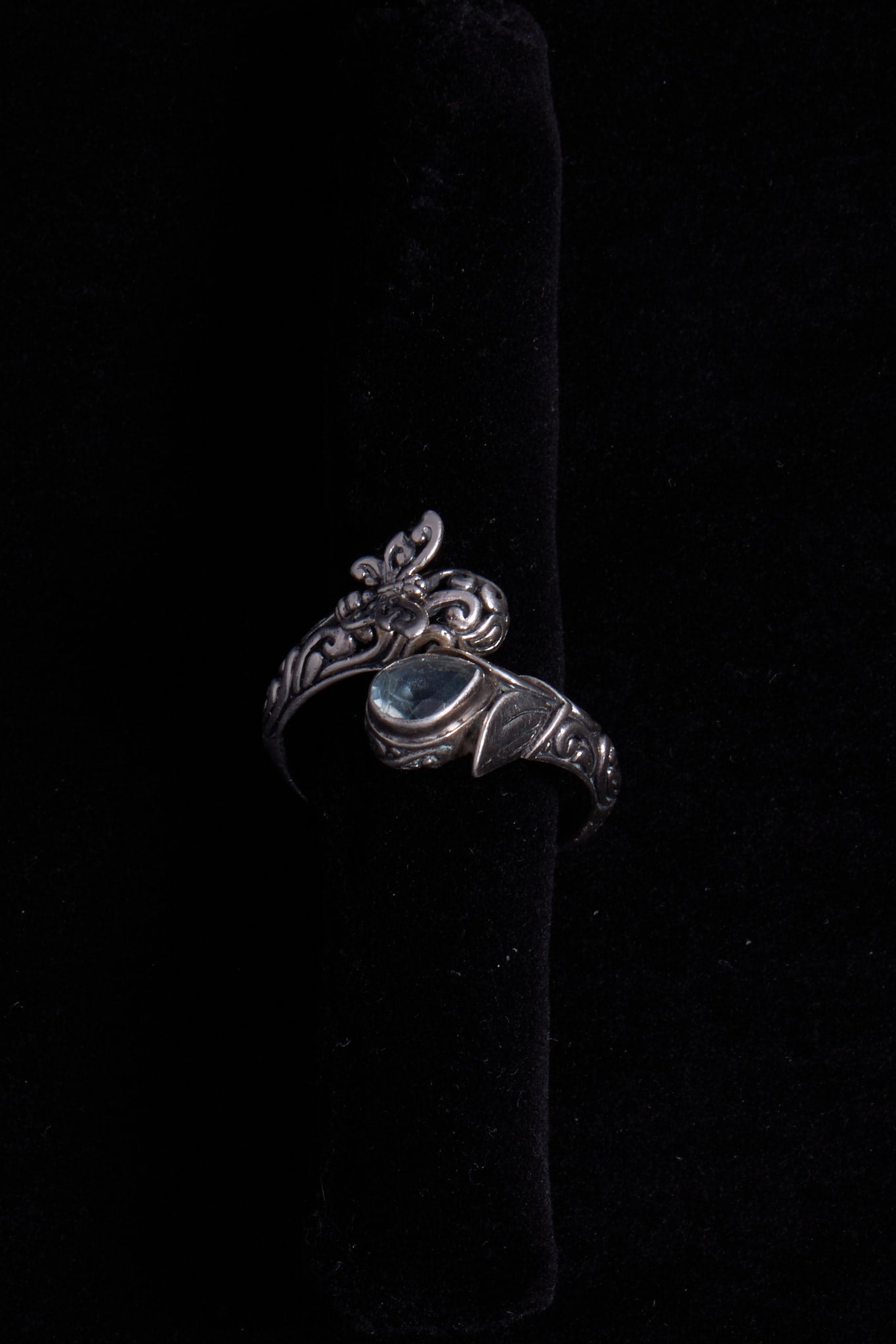 Sterling Silver Silver Ring with Blue Stone and Butterfly