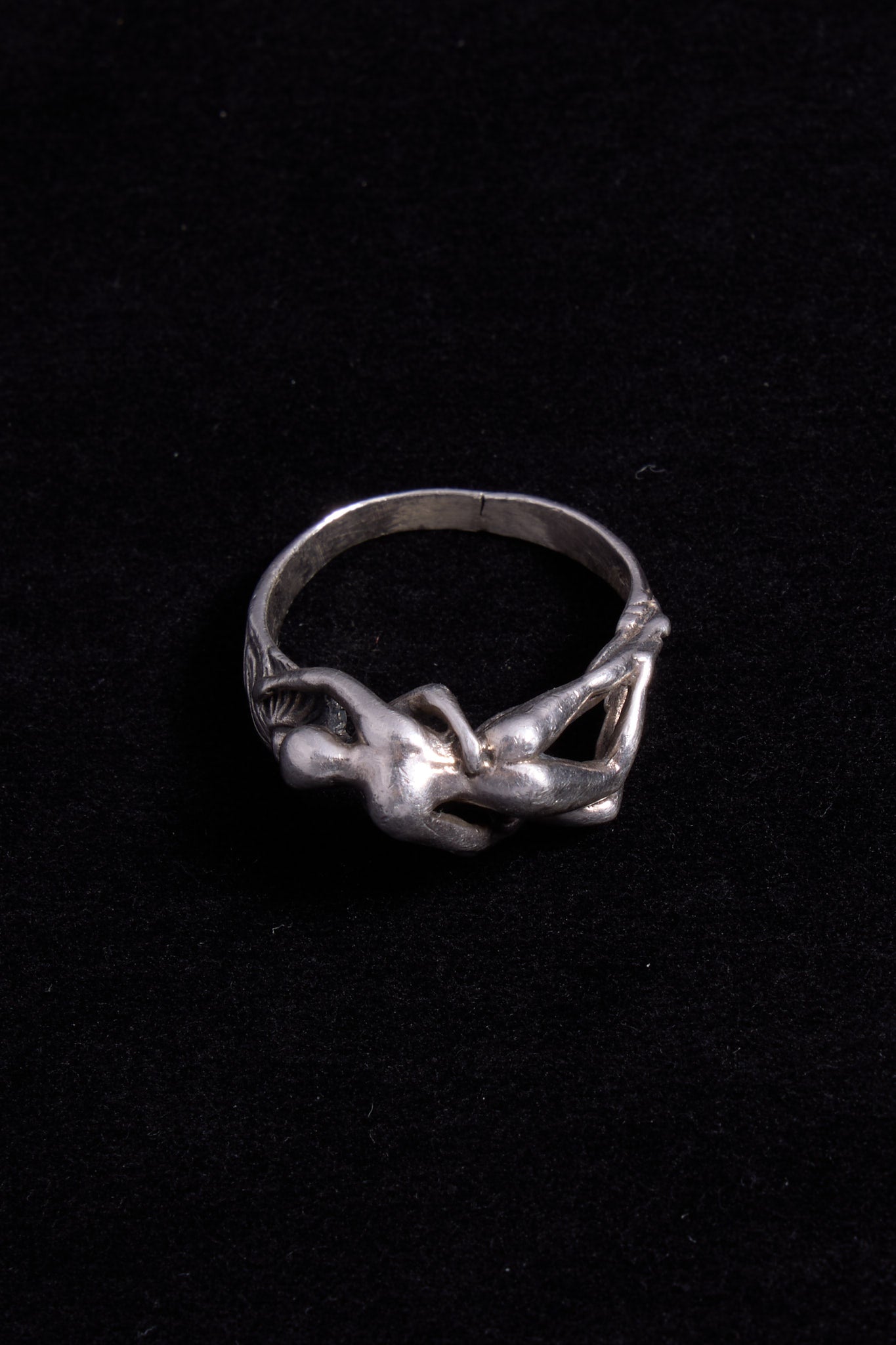 Vintage sterling silver ring with erotic design.