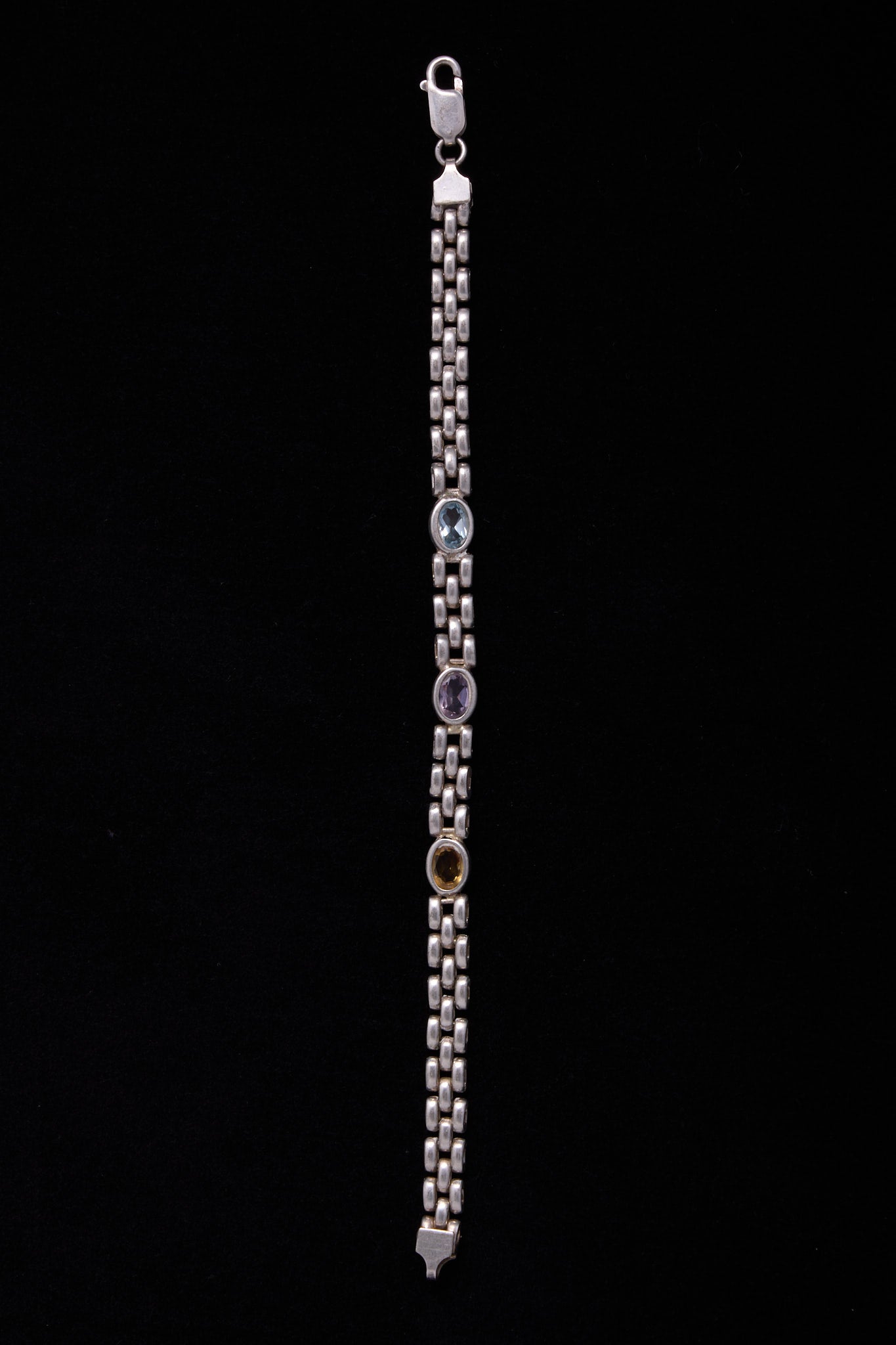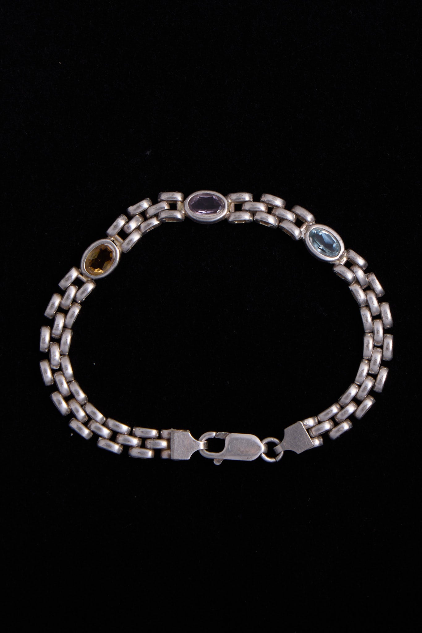 Sterling Silver Three-Stone Link Bracelet
