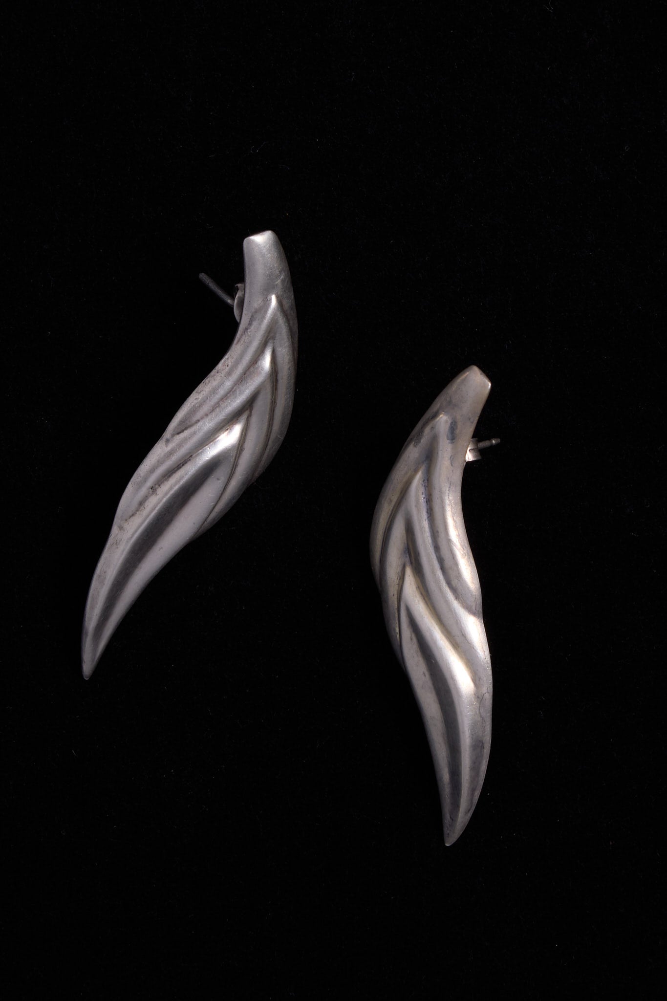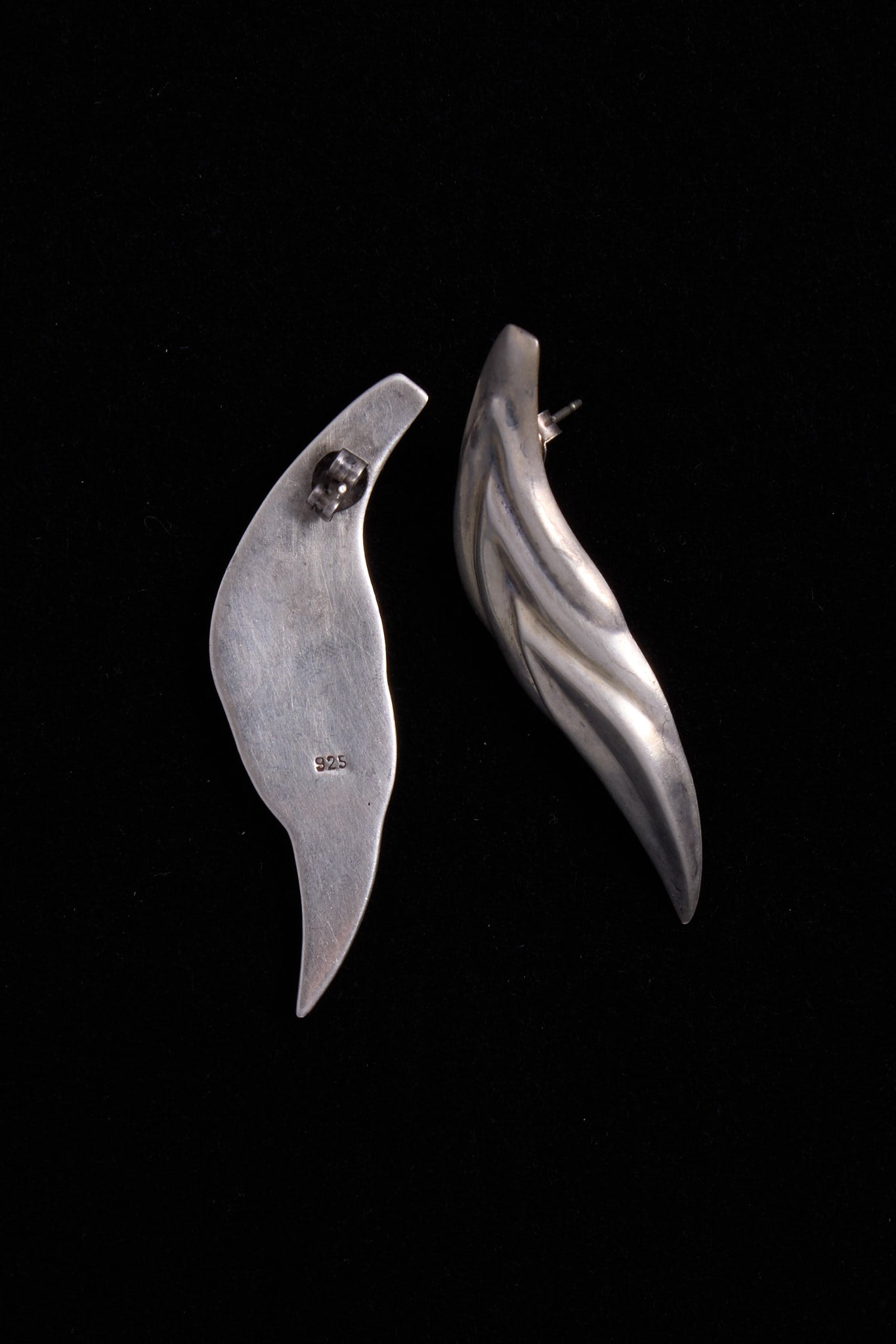 Sterling Silver Wing Feather Shaped Stud Earrings