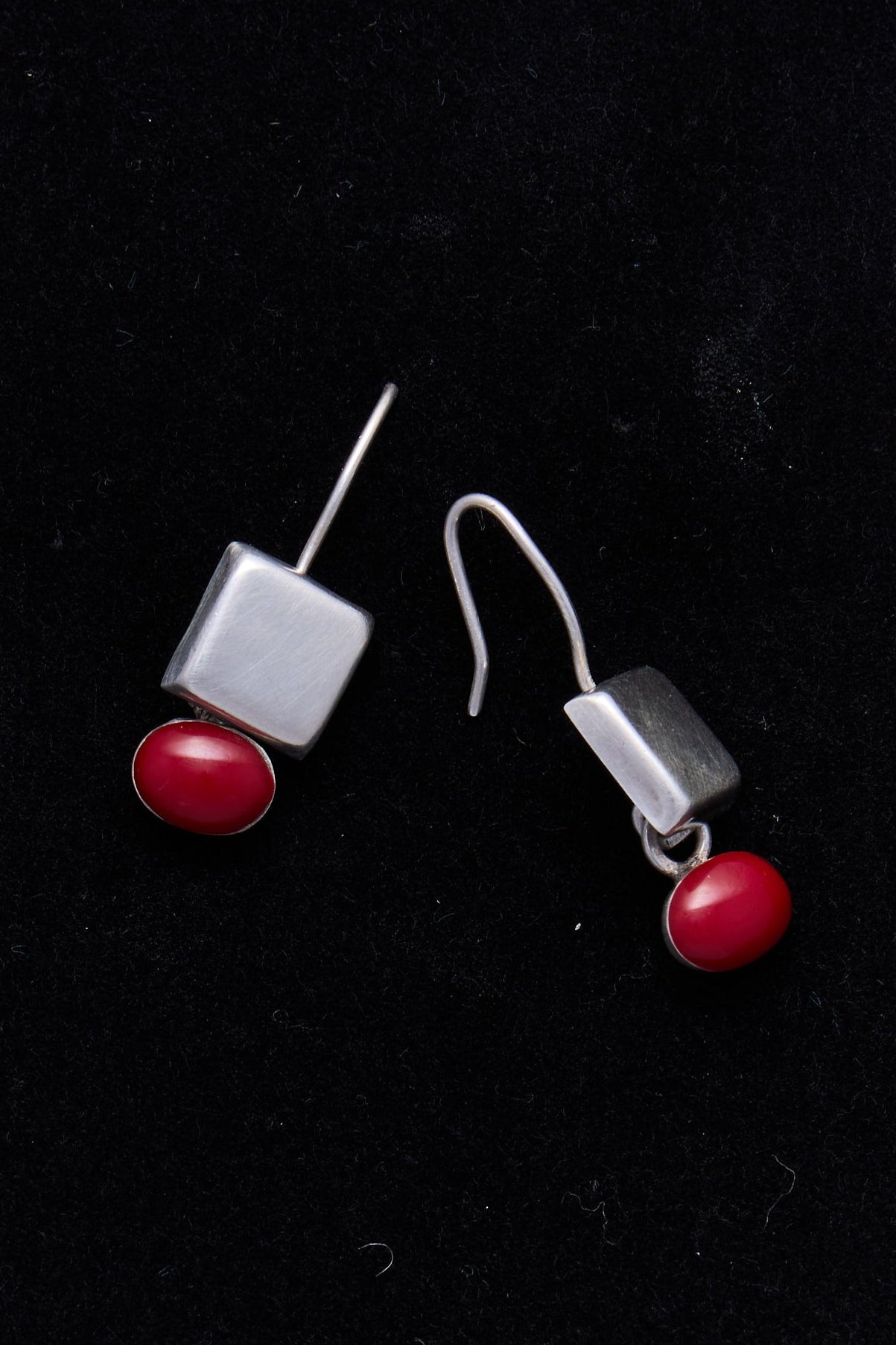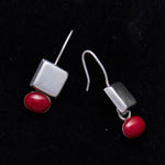 Sterling Silver Modernist Red Dot Earrings